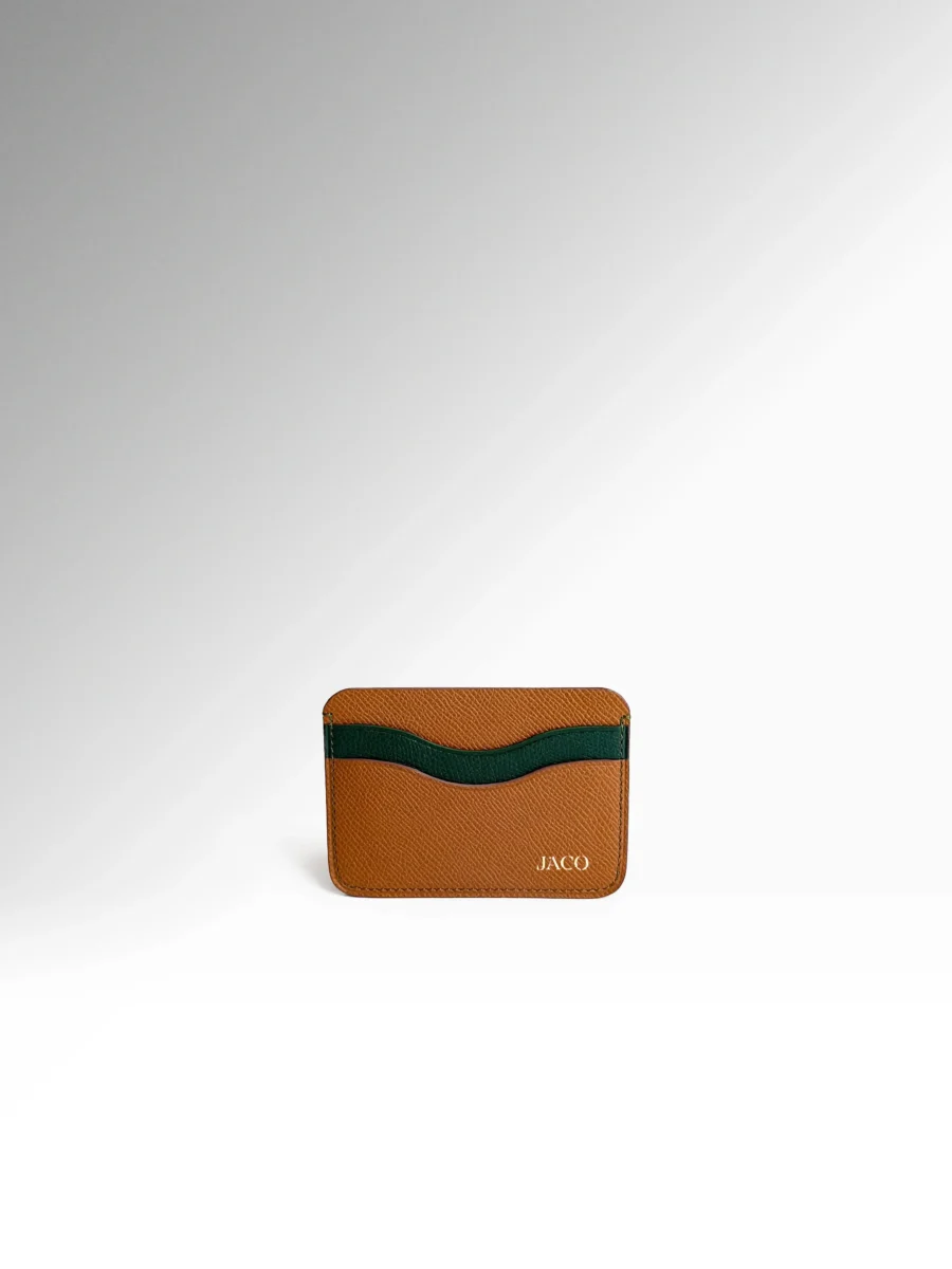 Το δερμάτινο card holder Hector του Jaco Atelier συνδυάζει style και πρακτικότητα. Με εξωτερικό σε cognac και λεπτομέρεια σε σκούρο πράσινο, ξεχωρίζει για το καθαρό, minimal design του. Χειροποίητα φτιαγμένο, κρατά τα απαραίτητα οργανωμένα σε ένα μικρό, κομψό Αξεσουάρ για κάθε μέρα.