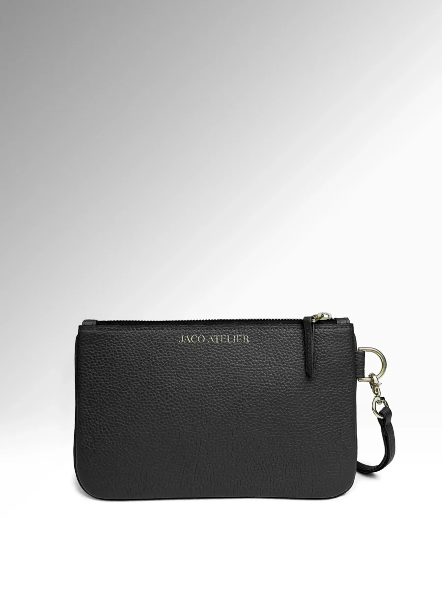 Το δερμάτινο pouch Ravello του Jaco Atelier είναι μια δημιουργία διακριτικής πολυτέλειας. Κατασκευασμένο από απαλό δέρμα μοσχαριού Togo full grain σε μαύρο χρώμα και διακοσμημένο με λεπτομέρειες από ορείχαλκο σε χρυσό τόνο, αποπνέει διαχρονική κομψότητα και ευελιξία. Με προσεγμένη χειροποίητη κατασκευή και αρμονικό design, αναδεικνύει κάθε σύνολο με φυσική φινέτσα. Ιδανικό από το πρωί έως το βράδυ, το Ravello είναι η ουσία της κομψότητας.