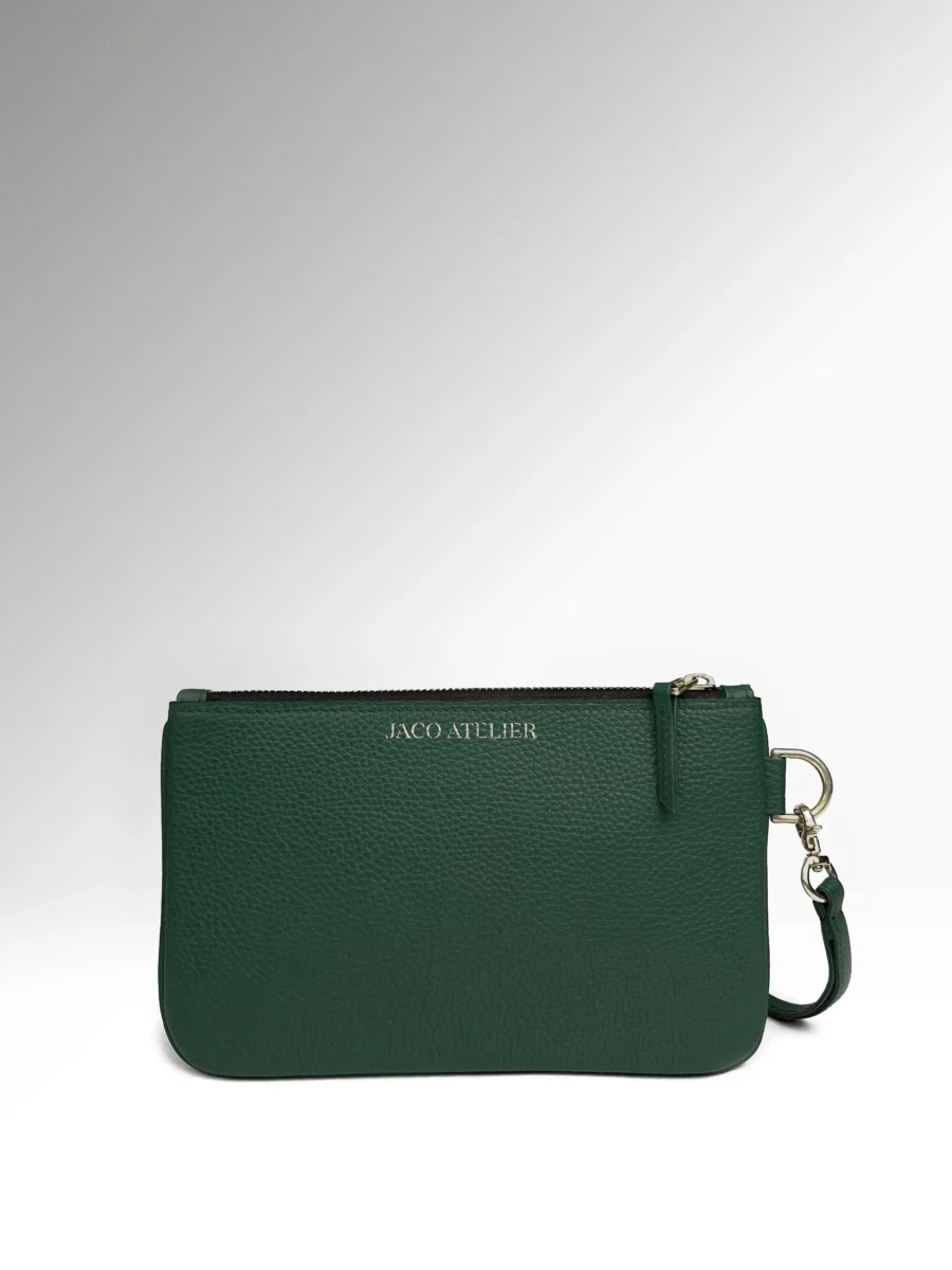 Το δερμάτινο pouch Ravello του Jaco Atelier είναι μια δημιουργία διακριτικής πολυτέλειας. Κατασκευασμένο από απαλό δέρμα μοσχαριού Togo full grain σε σκούρο πράσινο απόχρωση και διακοσμημένο με λεπτομέρειες από ορείχαλκο σε χρυσό τόνο, αποπνέει διαχρονική κομψότητα και ευελιξία. Με προσεγμένη χειροποίητη κατασκευή και αρμονικό design, αναδεικνύει κάθε σύνολο με φυσική φινέτσα. Ιδανικό από το πρωί έως το βράδυ, το Ravello είναι η ουσία της κομψότητας.